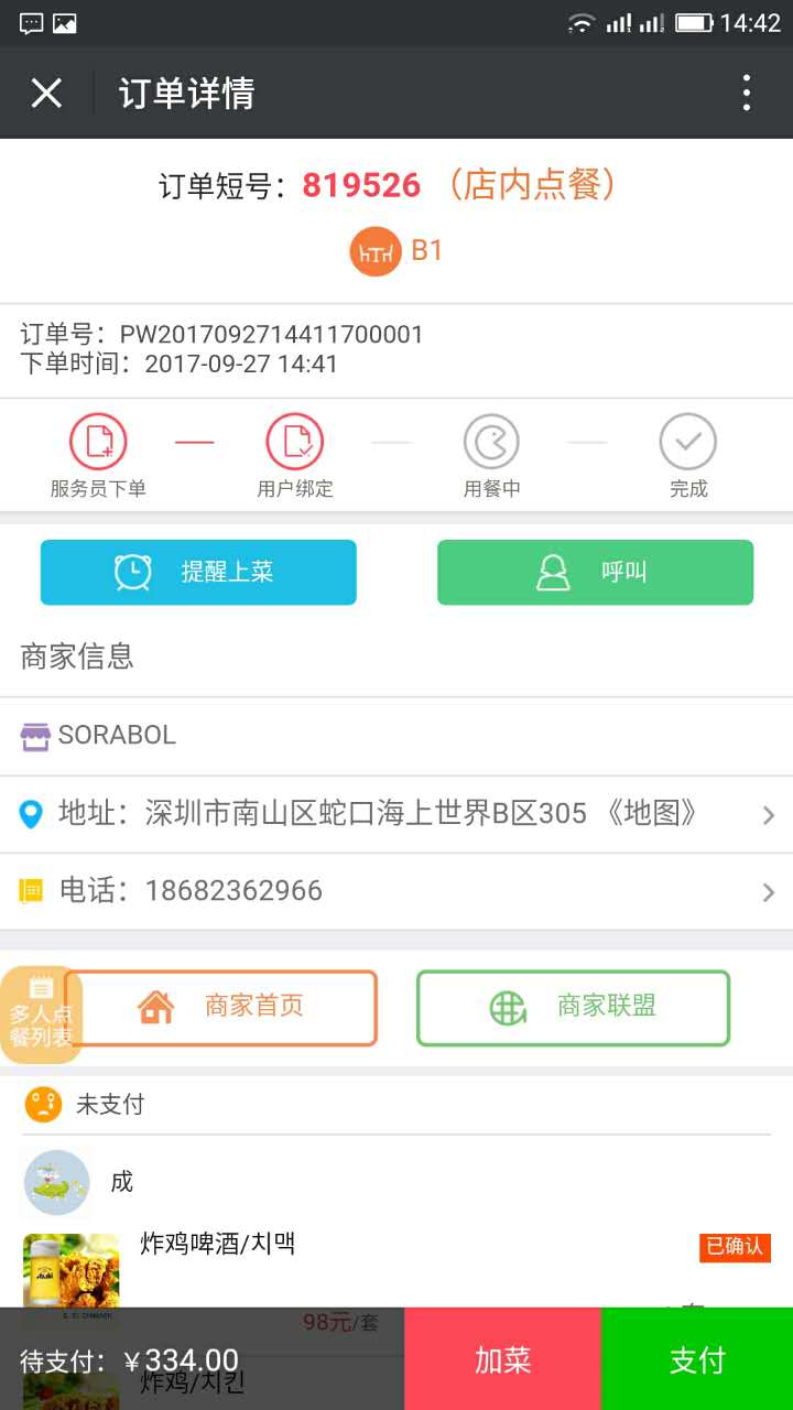 如果是服务员下单,客人仍可以扫描桌子上的二维码进行自助支付,无需叫服务员,也无须到前台,自助对账,自助支付,非常方便快捷。