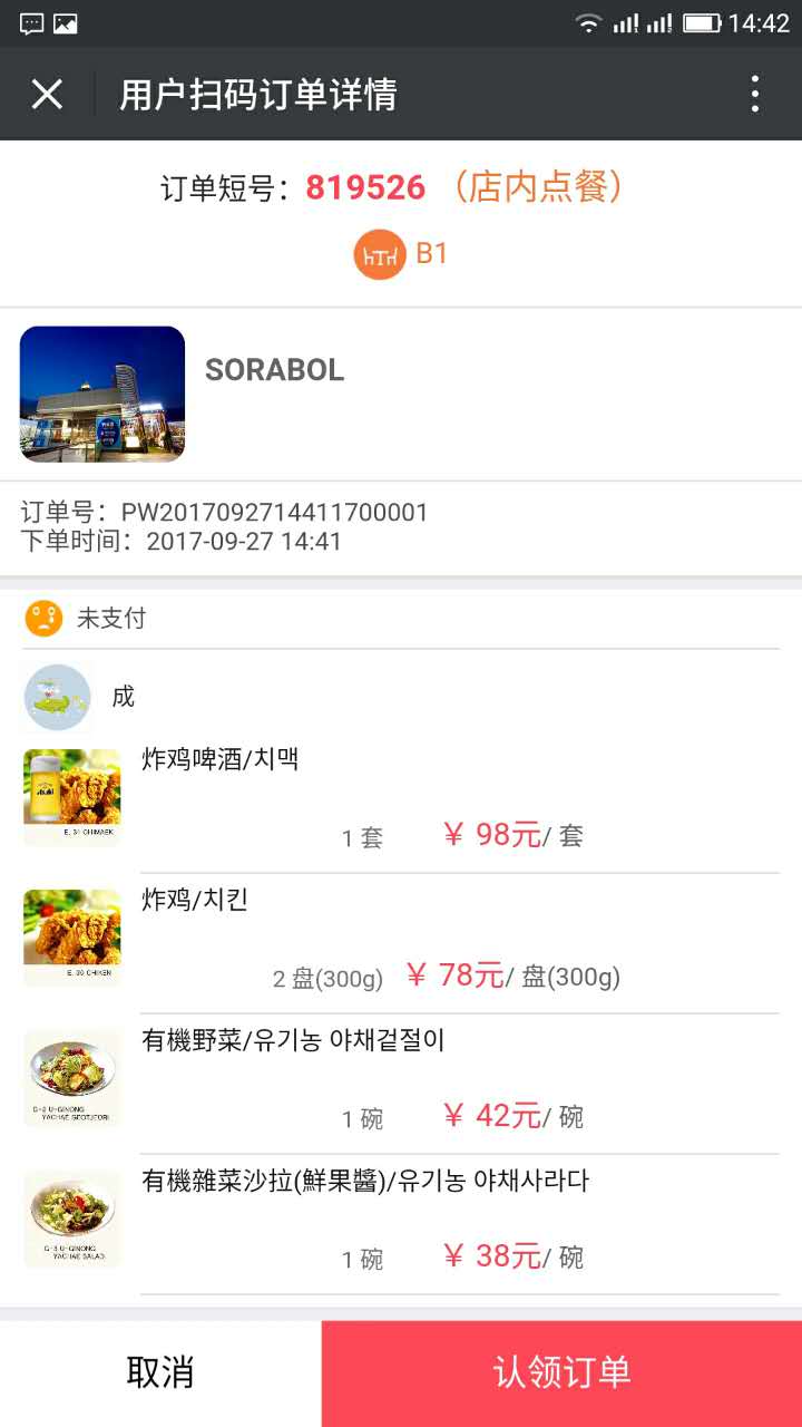 自助支付第一步,扫描桌牌二维码,在出在的界面上,点认领订单。如图所示: