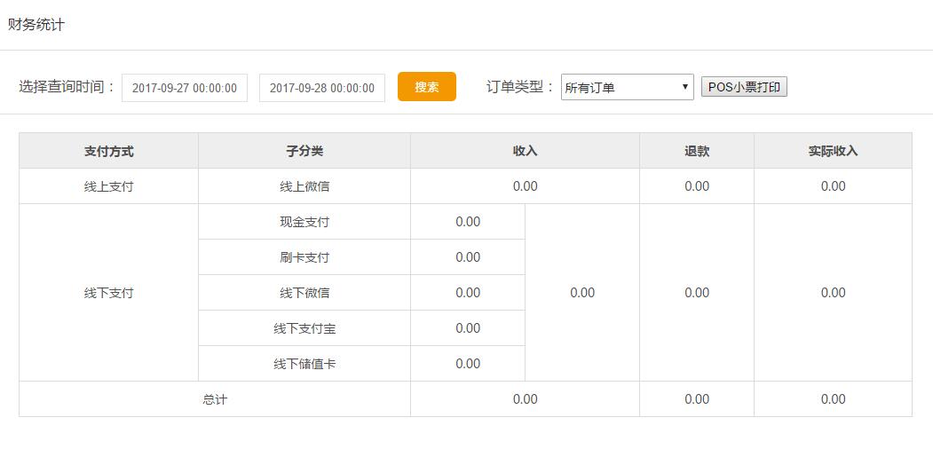 无论是线上自助结账,还是线下收款结账,系统都会自动记录并分析账务流水明细,如图所示,可根据开始时间,结束时间,查看财务流水的详细情况